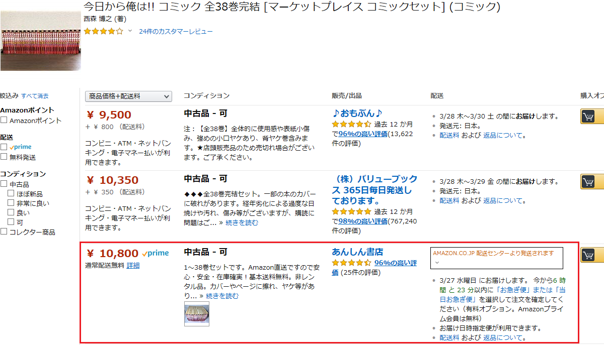 今回は「今日から俺は」の一例ですが、セット本はこのような商品が大量にあります。